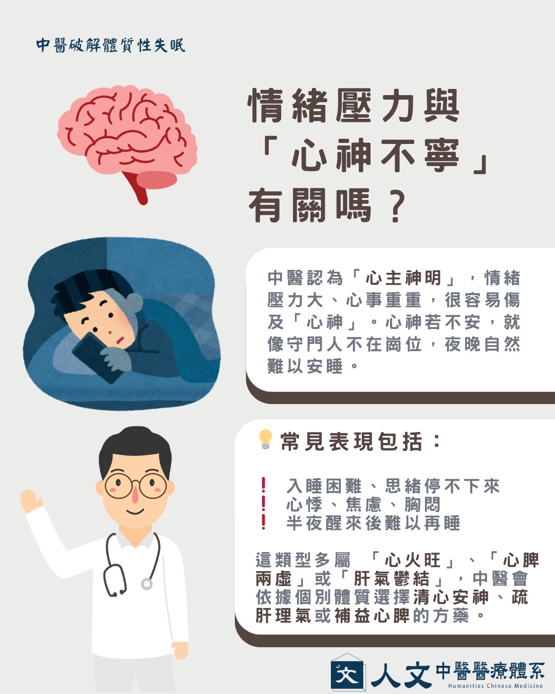 💡 這類型多屬**「心火旺」、「心脾兩虛」或「肝氣鬱結」**,中醫會依據個別體質選擇清心安神、疏肝理氣或補益心脾的方藥。